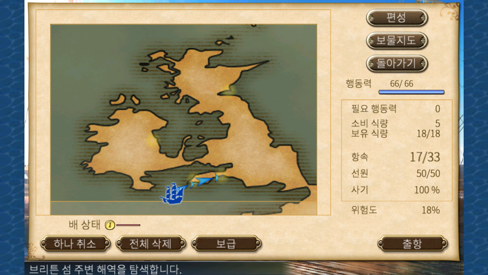 출항을 누르면 해도에서 수수께끼 선박 발견
