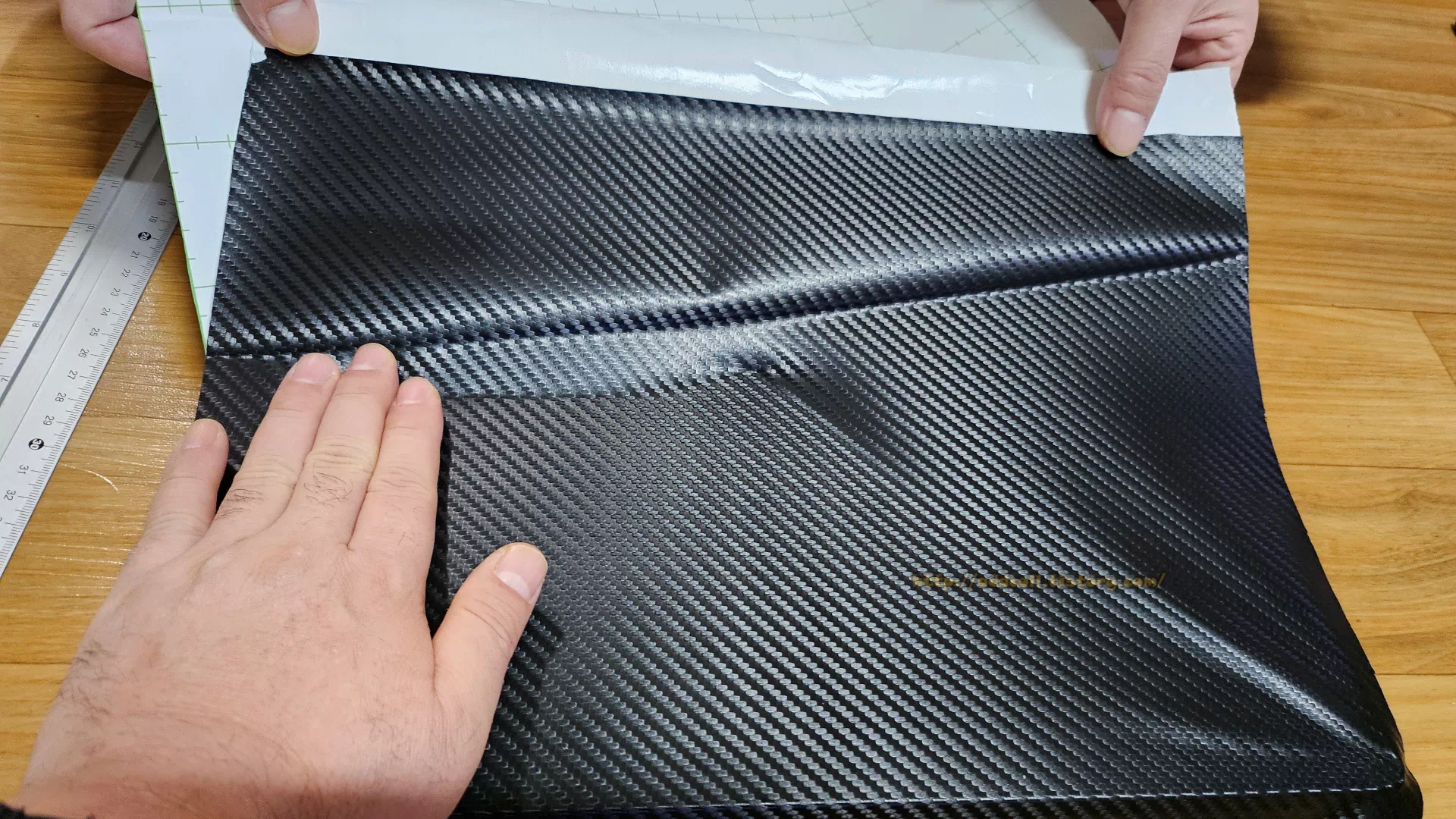 해당 제품은 일반 상품들과 다르게 부드러운 패브릭 재질로 약간의 쿠션도 있고 잘 늘어나서 굴곡 작업 또한 용이합니다. 다만 일반 비닐? 재질의 상품보다 두껍고 칼질 시에 약간의 뜯기는 듯함이 있습니다.