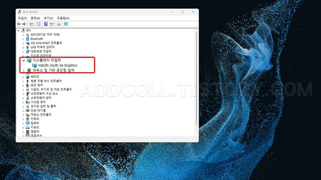 메모리를 추가하여 16G가 되면 내장 그래픽 사향도 Intel(R) Iris Xe Graphics으로 변경이 됩니다.