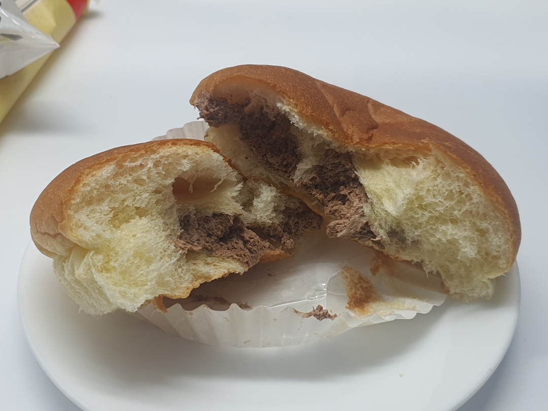 팬텀의 더블초코팡팡과 비슷한 비주얼이지만, 달달함과 느끼함이 덜해 부담 없이 즐기기 좋은 초코빵입니다. 부드러운 빵 속에 은은한 단맛의 초코 크림이 채워져 있어 간식용으로 적합합니다.